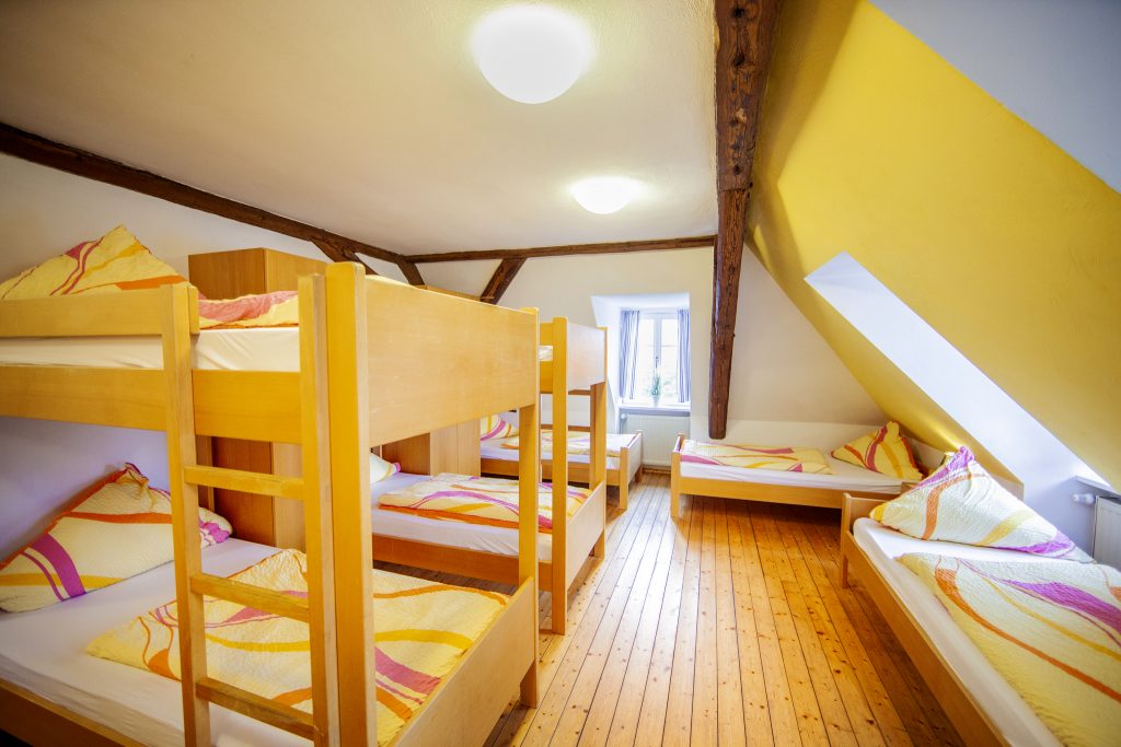 Unsere großen Mehrbettzimmer mit Schlafmöglichkeiten für 12 und 13 Personen sind die beste Wahl als Gruppenunterkunft. Das große Badezimmer besteht aus 3 Waschbecken, 2 Duschen und 2 separaten Toilettenräumen. Jedes Mehrbettzimmer hat neben dem großen Schlafraum auch ein integriertes Einzelzimmer. So können zum Beispiel Gruppenleiter oder auch Personen mit Schnarchproblemen sich wunderbar abkapseln. Nur bei uns können Sie sich für viele Personen eine unschlagbar günstige Unterkunft sichern!
